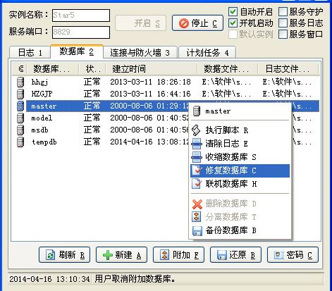 用迷你SQL附加好数据库之后,要查看数据库的状态。如果是“